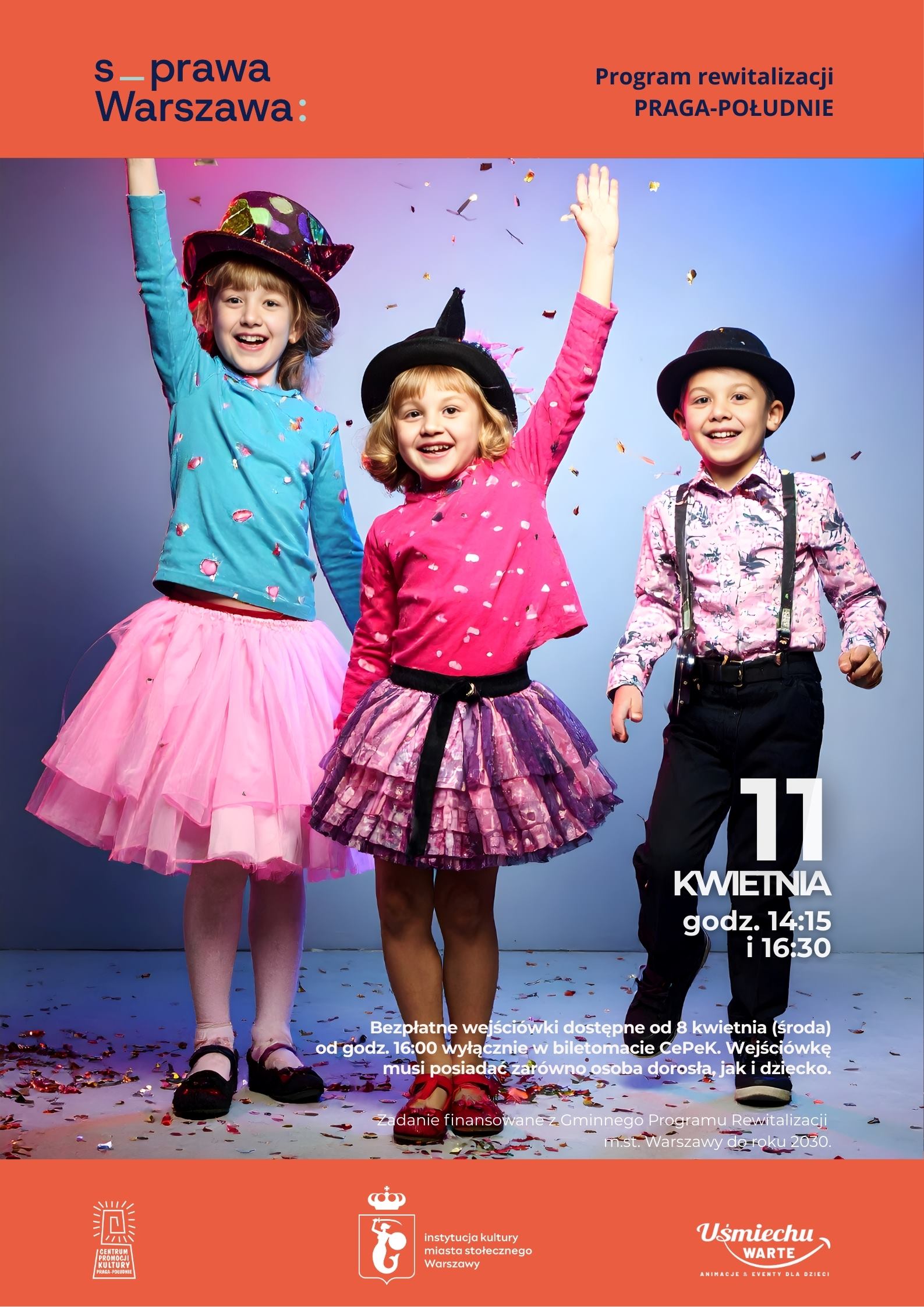 Bezpłatne wejściówki będą dostępne od 8 kwietnia (środa) od godz. 16:00 wyłącznie w biletomacie CePeK. Wejściówkę musi posiadać zarówno osoba dorosła, jak i dziecko.